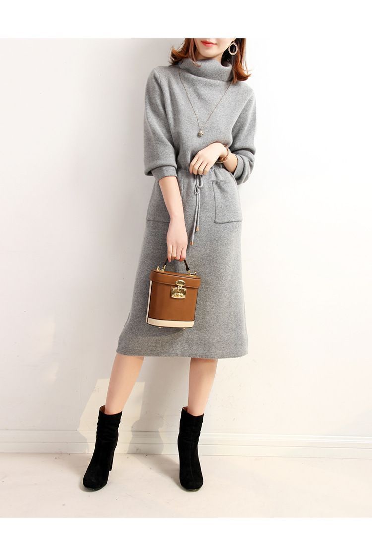 ニットワンピース レディース ハイネック ハーフネック ロングワンピース 長袖 ミモレ丈 膝丈 ニットワンピ タイトワンピース リブニット ウエスト ストレッチ 無地 せ 秋冬 体型カバー xkmilyx 36