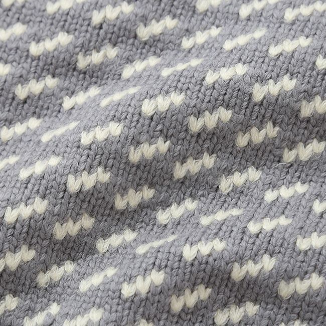 当社のアイコンアイテムの一つ、ウールのバーズアイ・ニットをベースに、軽やかなコットン/ポリエステル混紡糸を使用し、膨らみがありながらもとてもソフトで軽い着心地が魅力のセーターにアップデート。