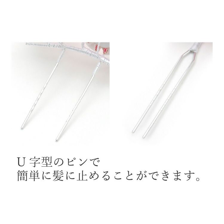 U字型のピンになっておりますので、簡単に髪に止めることができます。