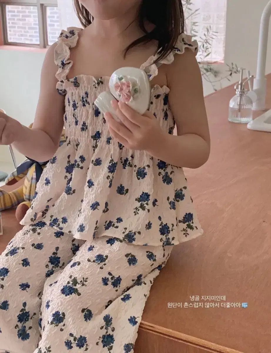 女児 フローラル クリンクル 上下セット セットアップ 青 XXL