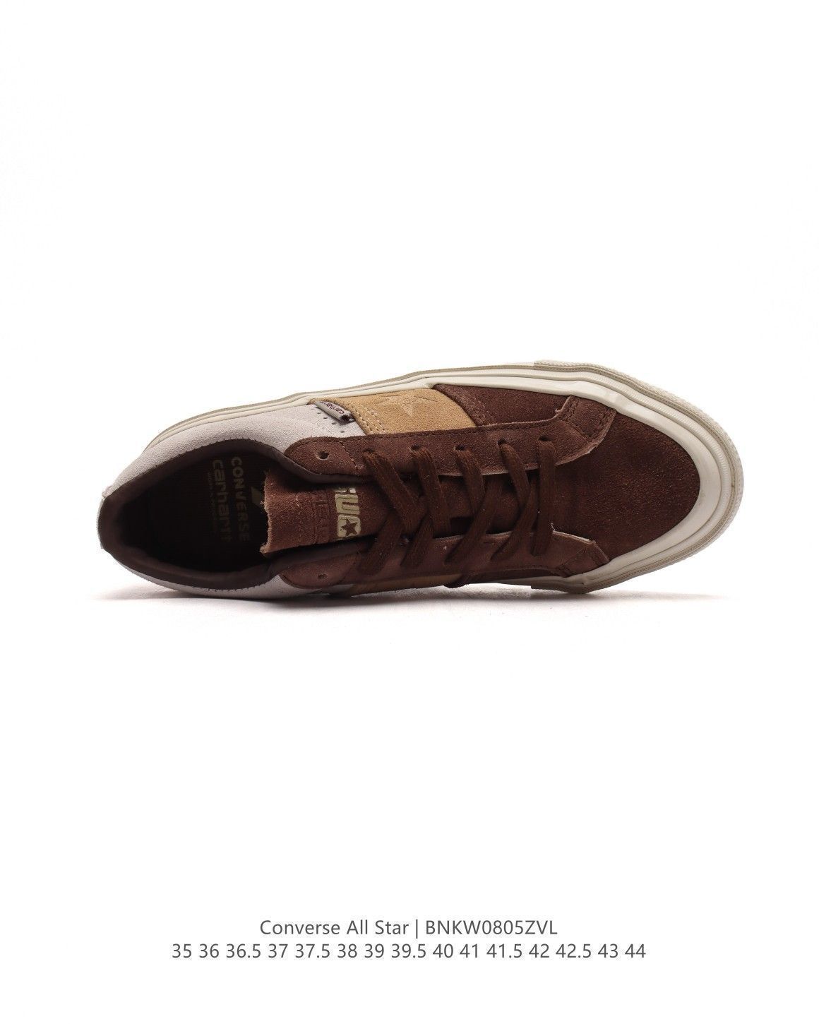 三片式のパネルで構成されるパネル仕様の上部は、Carhartt WIP の象徴的な茶色を基調とした作業服カラーが施されています。そして、作業服のズボンにインスピレーションを得た三重の縫い目が施されており、シンプルな工芸美学をクラシックなシューズに刻み込んでいます。