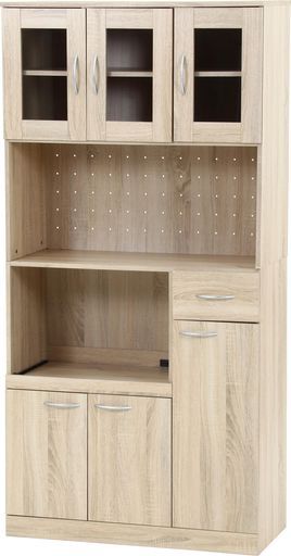 不二貿易レンジボード付き食器棚キッチン収納ハイタイプコンセント付き幅88 5 x奥行39 8 x高さ180 cmホワイトオーク 3梱包 70685